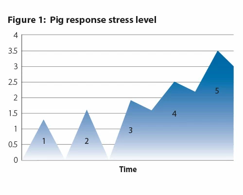 Weaning is a very stressful event that inflicts pigs with significant changes in behavior, physiology, and health status. Researchers have shown however, that a series of stress events beyond weaning alone can have adverse compounding affects. This idea is called the Additive Stressor Model (Figure 1) that shows how individual stress events may have moderate effects on the pig, but when combined may have lethal implications.