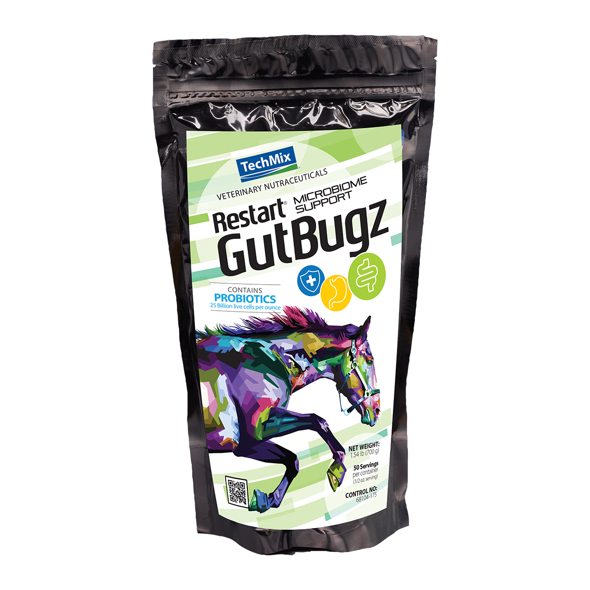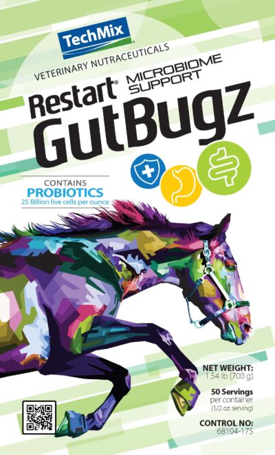 Keeping a horse’s digestive system populated with beneficial bacteria is a great way to ensure that the horse has a balanced digestive environment. By creating that balance, you create feed intake consistency to utilize vitamins and minerals, supports their natural immune system, and maintain overall health and body condition. Help to create a normal digestive environment by providing Restart GutBugz probiotic for horses, a powder that can quickly infuse the gut with the live bacteria cells and active enzymes that are needed to support the digestion of nutrients.